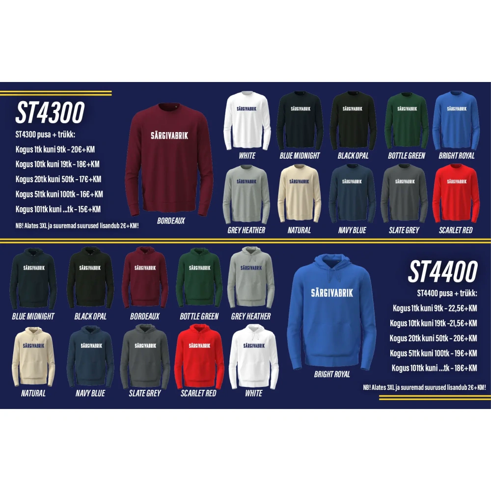 Siiditrüki hinna määrab trükitava logo/pildi värvide arv ja toodete kogus. Mida suurem kogus, seda odavam on ühe tooteühiku valmimise hind. Siiditrükk