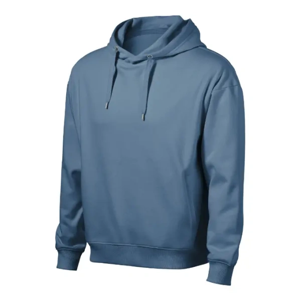straight cut with side seams full-length reverse coil zipper drawcord hood with lining inner back neckline with a tape kangaroo patch pockets 2:2 rib knit bottom hem and cuffs with 5 % elastane contrast elements brushed inner side